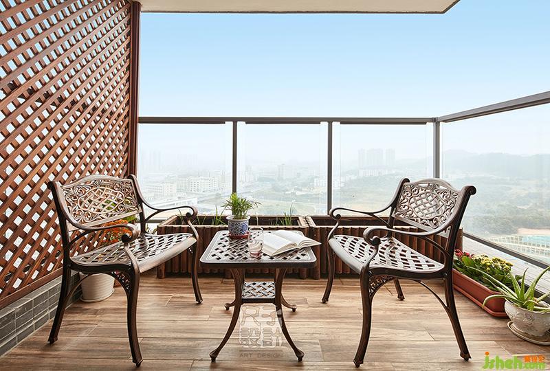 由于阳台的面积和承重量都有限度,因此,阳台上的家具宜选用轻便型的折叠家具。阳台是最适合家庭养植各种花草的地方,盆栽植物可置于阳台栏板上,但应注意安全,要加设护栏,以免花盆坠落伤人。也可设置垂直的绳索、塑料管线等,种植葡萄、爬山虎等具有攀缘性能的植物,一方面美化了阳台,又可在盛夏季节起到遮挡阳光的作用。除绿色植物、花卉等能起到装饰阳台的作用外,阳台侧墙面、地面也是装饰美化的重点。例如,可在整齐有致的侧墙上挂置富有装饰韵味的陶瓷壁挂、挂盘、雕塑等装饰品,有的隔墙还可做成博古架的形式,以供放置装饰器物。在平滑素雅的墙面上,也可挂置用柴、草、苇、棕、麻、玉米皮等材料做成的编织物作为装饰品,阳台的地面可利用旧地毯或其他材料铺饰,以增添行走时的舒适感。设计公司