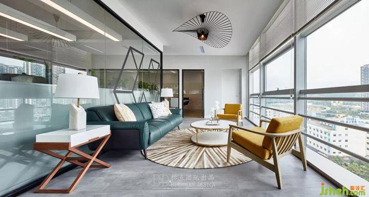 设计师通过简单明快的设计对空间进行重新分割,规划出干净利落的四个功能几何空间,来演绎包含对话、沟通、互动与融合的办公及管理模式。