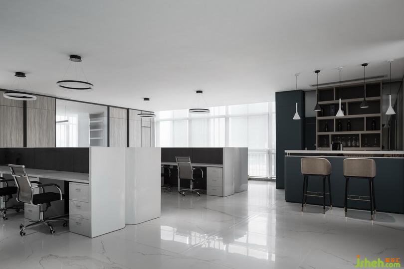 作品简介:私人办公空间格局并没有过多的复杂,透明玻璃隔断的设计使其划分了空间私密感之余,又不会太过的规定界限。