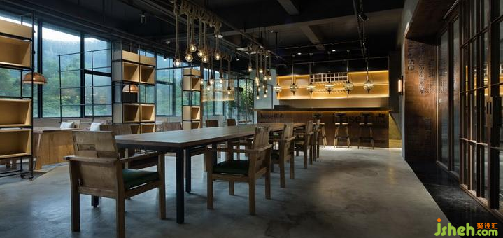 作品简介:在这美境中的创客,原木的材质、斑驳的锈钢板、清水混凝土的地面,都迎合着气氛,都成了框景的一部分,有清茶浓咖,有创客也有休闲,清风伴着鸟鸣,喧嚣、张扬以外的另一种创客——来自内心与自然的对话。