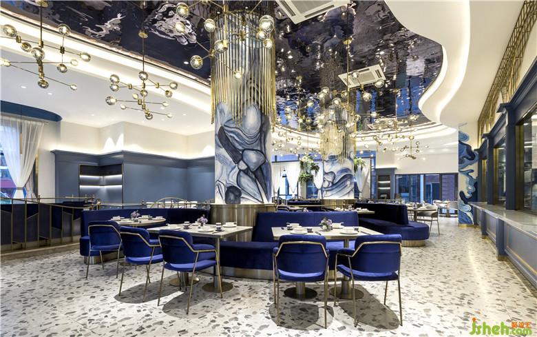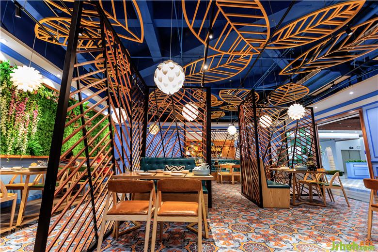作品简介:为凸显新派粤菜餐厅的潮流感,设计师在该设计中以热带风情为主题