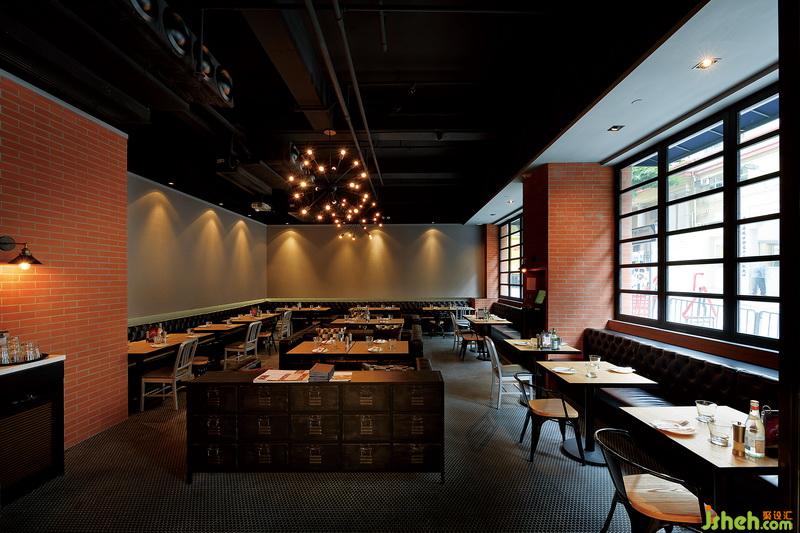 配合以砖墙、木质桌椅、水泥地面以及黑色壁纸及涂鸦等工业元素