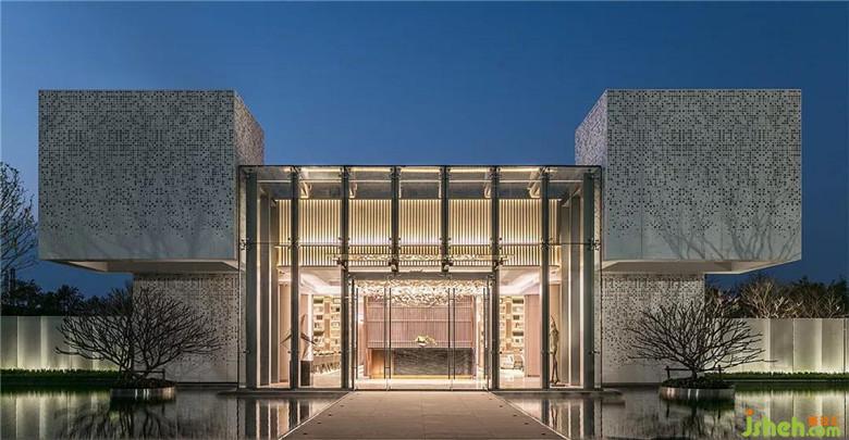 售楼处坐落于诗意栖居的湖南,设计脱胎于电影艺术的蒙太奇手法,运用点、线、面的构成,通过对不同空间的分切和组合,实现时空再造,新颖与传统,东、西方有序的链接,将建筑,景观,室内的景象在光影的作用下娓娓道来。