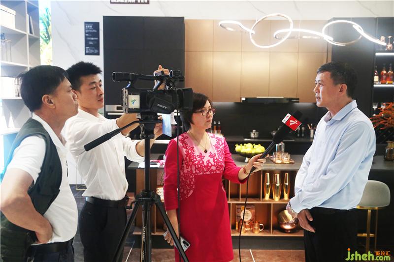 ▲广东邦克厨卫有限公司董事长罗永杨接受采访