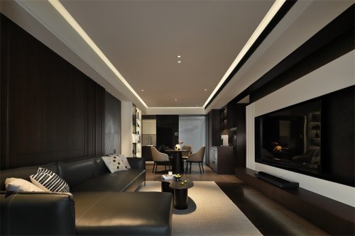 时光筑造家装设计 |《雾境》LDK+“双厅”布局,深色木材串联整屋,功能性与